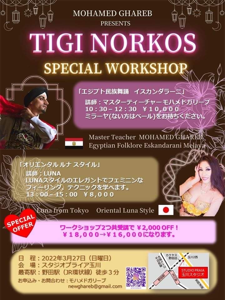 とはアラビア語で”一緒に踊ろう”と言う意味です。このタイトルの通り、皆んなで一緒に楽しく踊り、オリエンタルダンス・エジプシャンダンスというアートを愛してやまない私達の思いをステージで思い切り表現し、そして証明しましょう!