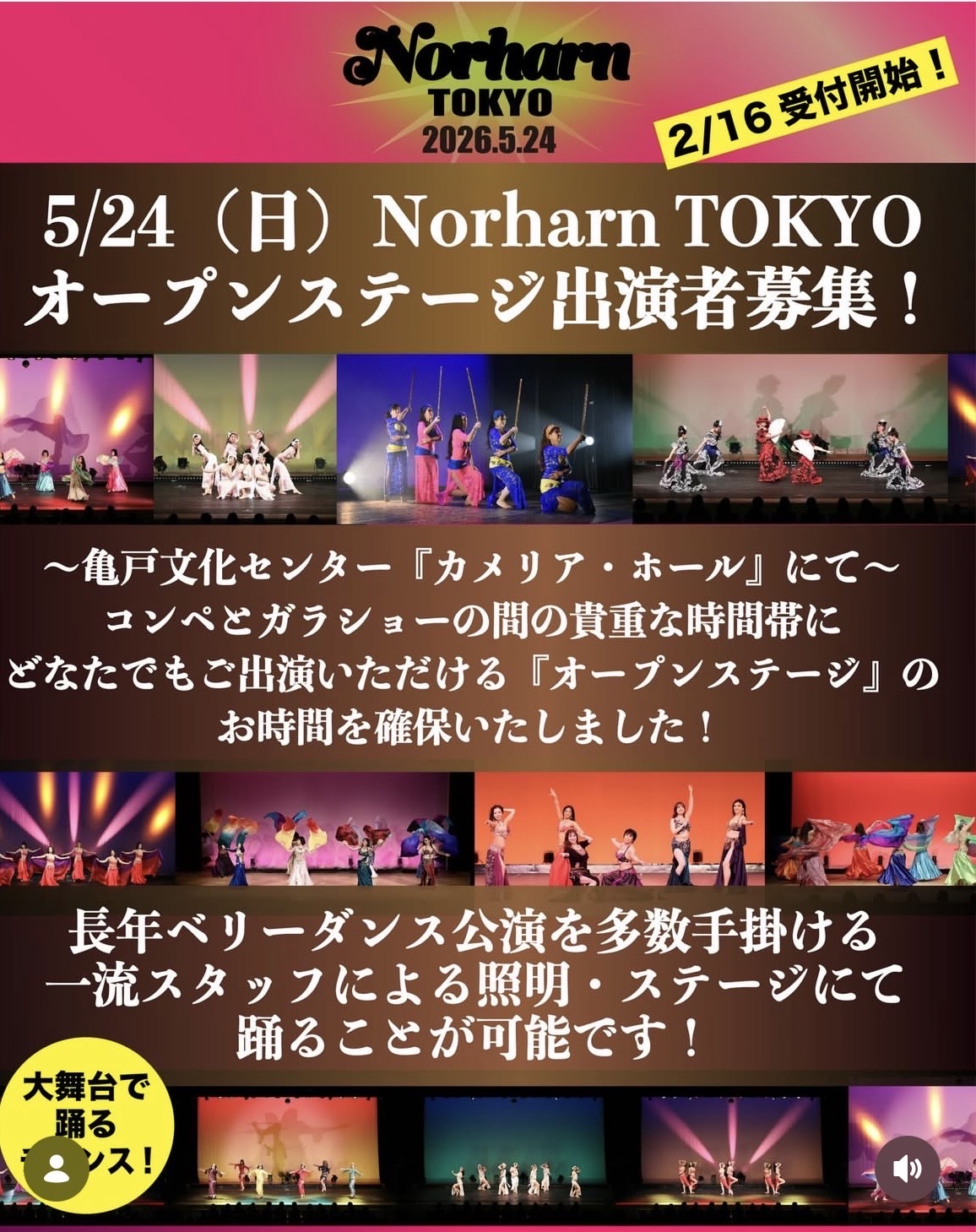 ジャンル:不問。ベリーダンス、オリエンタルダンス、またはそれに準ずるダンスであればどのようなジャンルでも可。音源は純粋なベリーダンス音源でなくてもなんでもOK。プロップ/道具も自由です。
